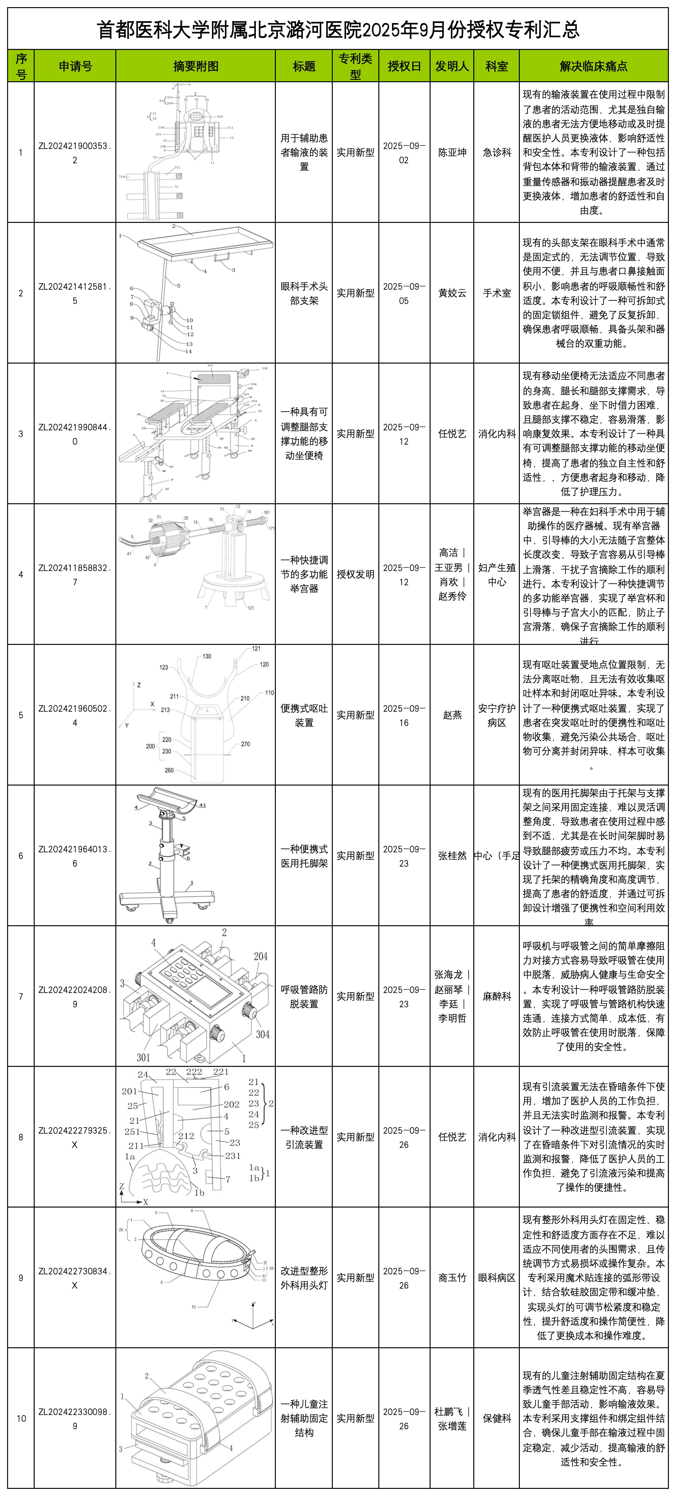 首都医科大学附属北京潞河医院2025年9月份授权专利汇总